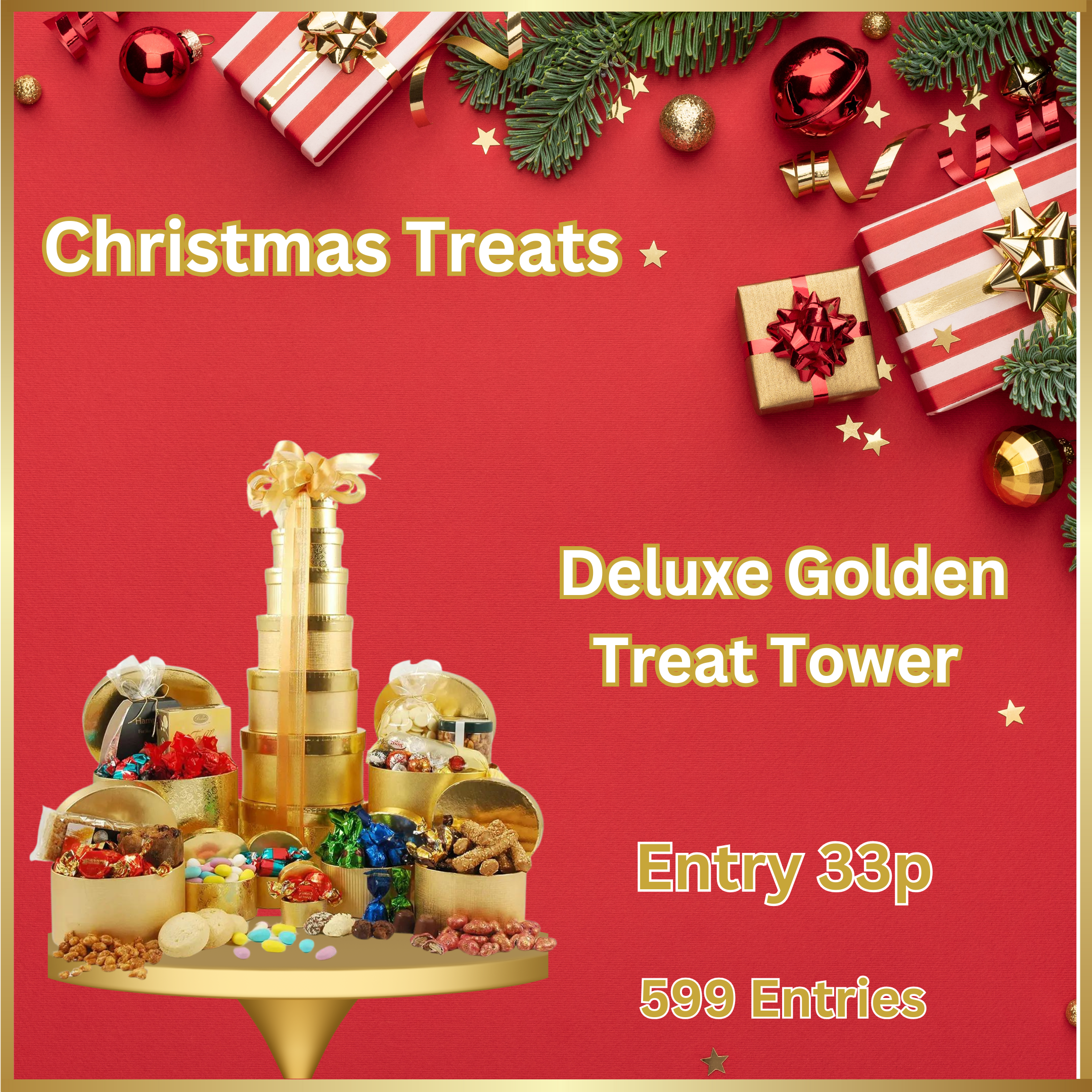 Our top-of-the range chocolate tower is a soaring 50cm tall and features 7 golden gift boxes, each one filled to the brim with a vast amount of chocolates, cookies and other sweet treats. This is pure indulgence on a grand scale. The contents include award-winning Butterscotch Cookies, Honey Baked Flapjack, medal winning Seasalt & Caramel Fudge, Belgian Truffles, Chocolate Coated Brazils, Fruit Cake, Caramels, Sicilian Lemon Butter Cookies, After Dinner Mints and a huge amount more. And when the treats are gone, the shimmering golden lidded gift boxes can be re-used as charming storage boxes. The tower arrives beautifully hand-tied with gold ribbon and the sheer number of goodies mean this gift is perfect for sharing – either in an office or for the whole family.